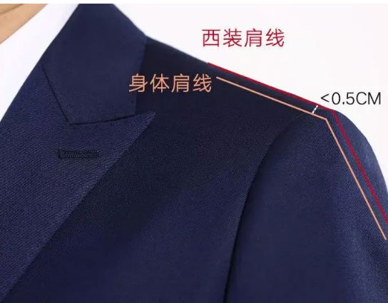 了解了自己是屬于哪種肩型的,然后再判斷定制西服的肩部是否合身。一件合身的西服,西服肩線與身體肩線的間距應(yīng)在0.5厘米以內(nèi),不超出0.5厘米。同時(shí)在穿上西服后,應(yīng)撫摸手臂與肩膀交接處,看看是否與身體線條角度保持一致。
