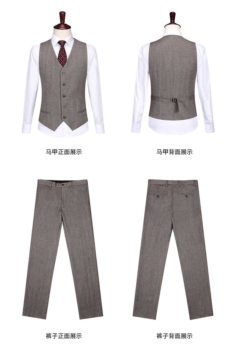 西服設計亮點西服細節展示西服駁頭及袖口細節圖西服內里細節圖西服下擺褲子腰頭細節圖褲子細節圖西服正反面展示圖馬甲褲子正反面展示圖