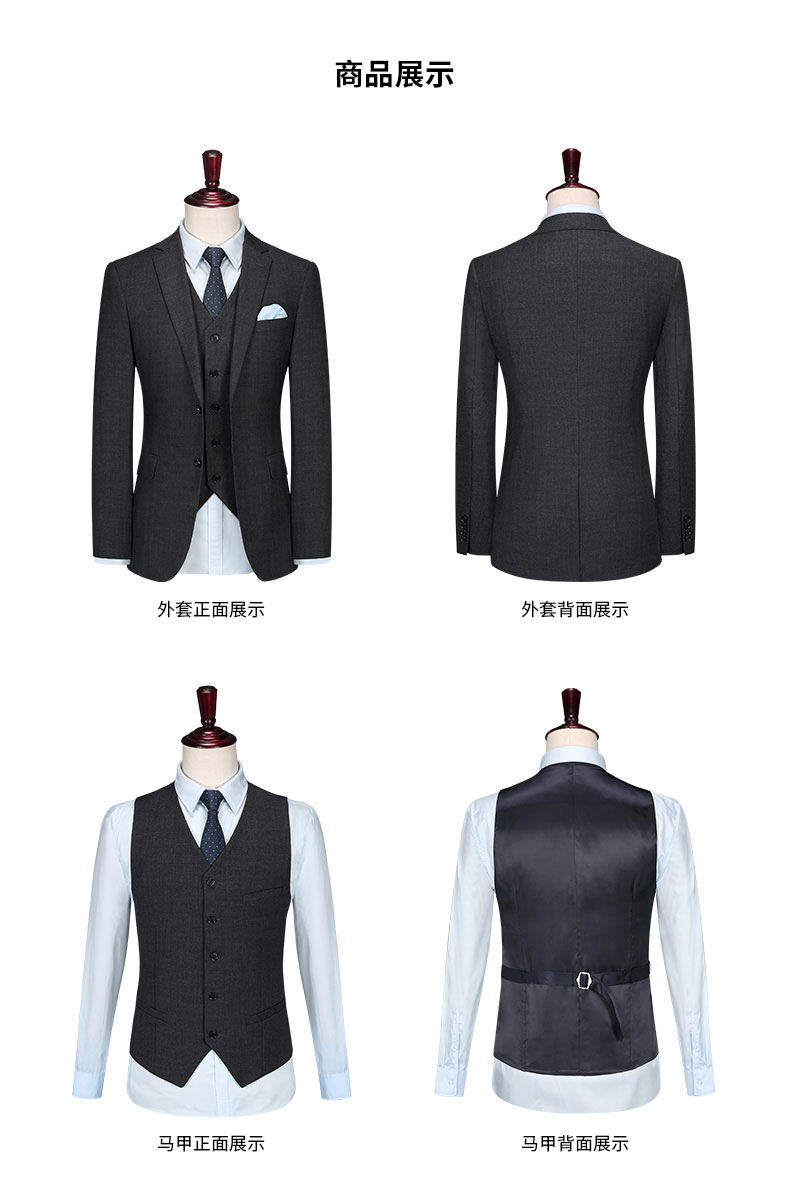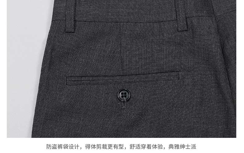西服外套工藝說明西服外套及馬甲正反面款式圖西褲正反面款式圖西服駁頭細節圖西服內里細節圖西服下擺及西褲腰頭細節圖西褲款式細節圖西褲細節圖馬甲背扣細節圖