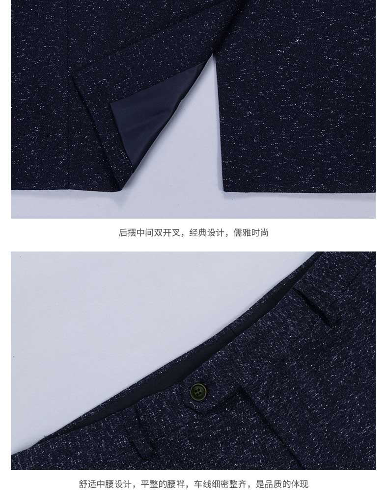西服工藝說明圖片西服馬甲正反面款式圖西褲正反面款式圖西服駁頭細節圖西服內里細節圖西服下擺及腰頭細節圖西褲款式細節圖西褲款式細節圖