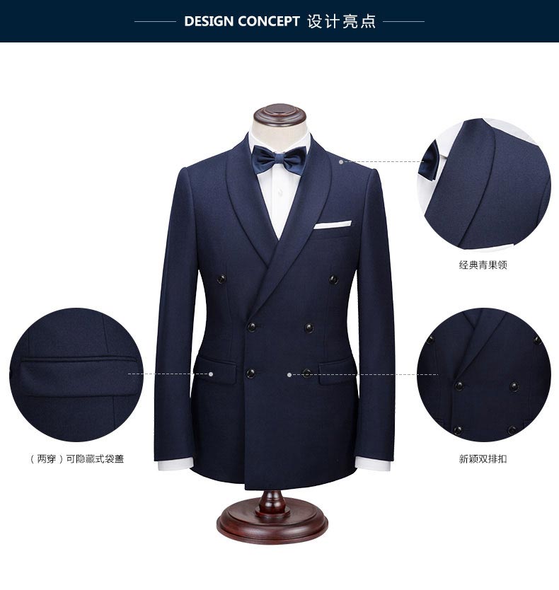 西服款式細節圖西服款式背面細節圖青果領駁頭細節圖西服袖山細節圖口袋細節圖袖口細節圖