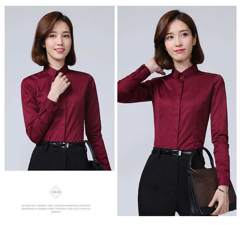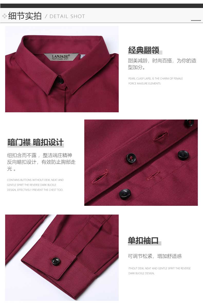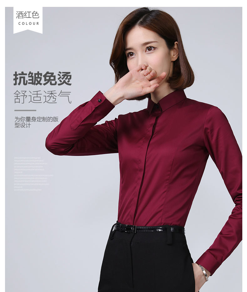 女士酒紅色襯衫款式圖