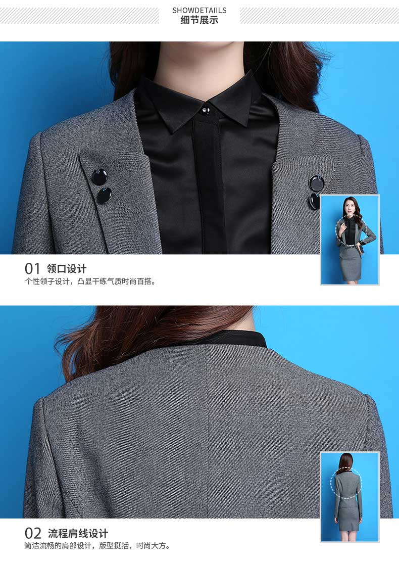 女士西服款式細節圖女士西服正反面款式圖西服上衣款式細節圖半裙款式細節圖